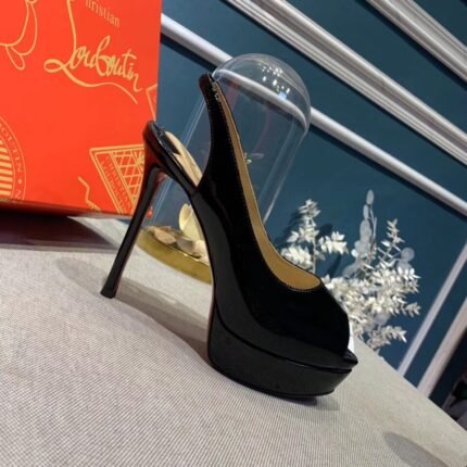 Christian Louboutin Black Patent Lady Peep Sling Pumps 130mm