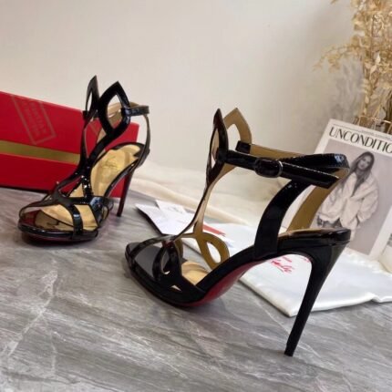 Christian Louboutin Black Patent Double L 100mm Sandals