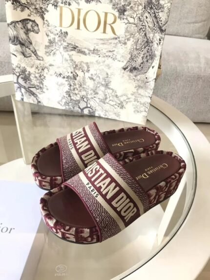 Dior Dway Slides In Bordeaux Oblique Embroidered Cotton