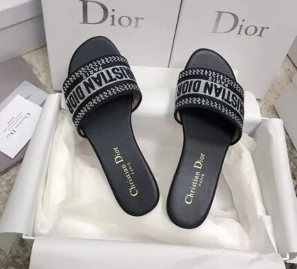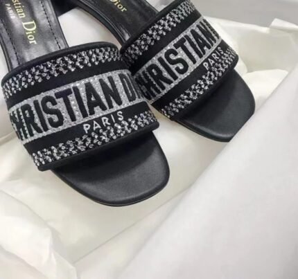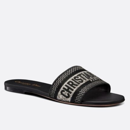 Dior Dway Slides In Black Metallic Thread Embroidery and Strass