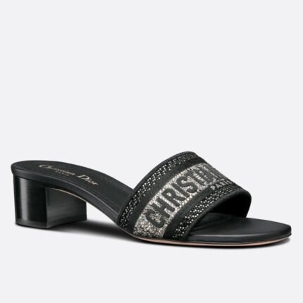Dior Dway Heeled Black Slides with Metallic Thread and Strass