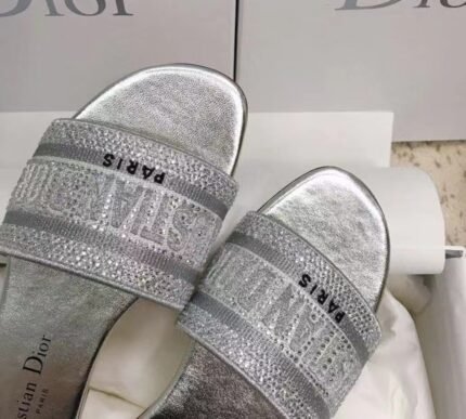 Dior Dway Slides In Grey Metallic Thread Embroidery and Strass