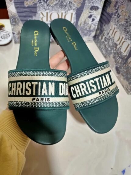 Dior Dway Slides In Green Embroidered Cotton