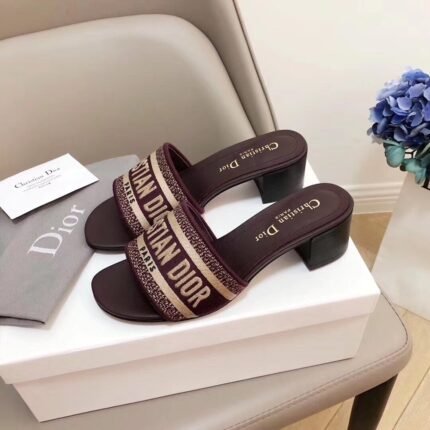 Dior Dway Heeled Slides In Bordeaux Embroidered Cotton