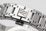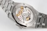 The transparent bottom cover can display the latest 50th anniversary commemorative movement of Royal Oak, upgraded with Calibre 7121 movement, which has a higher beat rate and power storage compared to the previous 2121 movement.