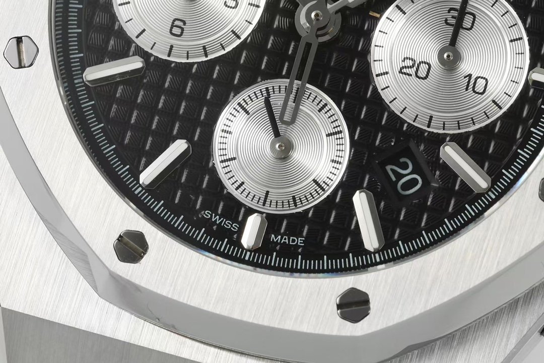 The AP/Audemars Piguet Royal Oak Series 26331 special edition with a transparent bottom and the 26240 anniversary edition with a transparent bottom have been launched, featuring the same 7750 chronograph movement as the genuine product (6-second position). The 316 stainless steel case is treated with wire drawing and partial polishing, showcasing a delicate and tough unique atmosphere. The rough and atmospheric 41mm dial is full of strength and super luminous display, which can read the time in any environment