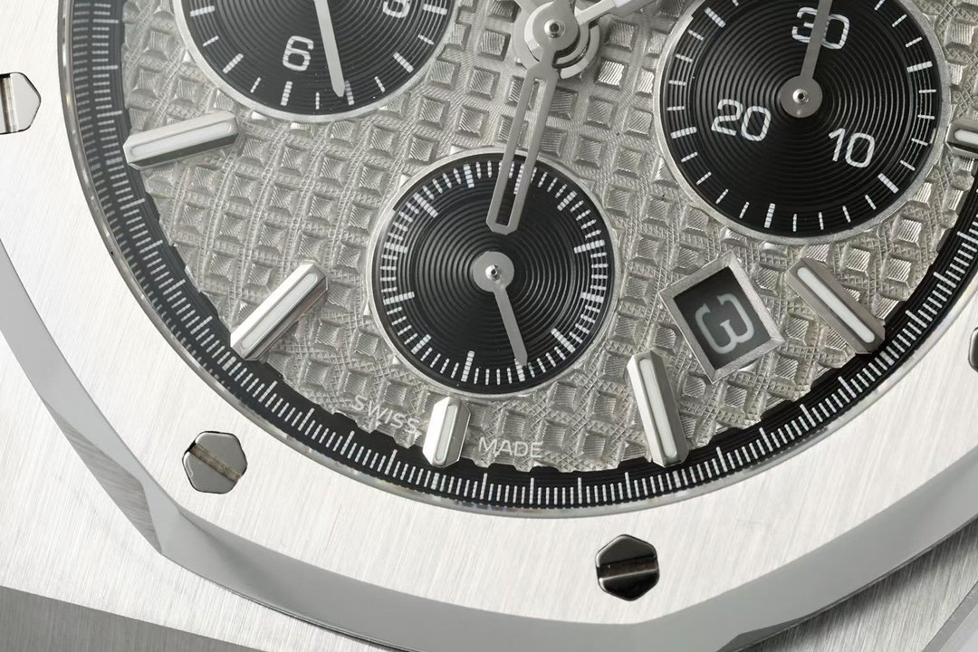 The AP/Audemars Piguet Royal Oak Series 26331 special edition with a transparent bottom and the 26240 anniversary edition with a transparent bottom have been launched, featuring the same 7750 chronograph movement as the genuine product (6-second position). The 316 stainless steel case is treated with wire drawing and partial polishing, showcasing a delicate and tough unique atmosphere. The rough and atmospheric 41mm dial is full of strength and super luminous display, which can read the time in any environment
