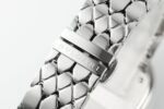 four ⃣ The newly designed hexagonal snake shaped stainless steel bracelet is flexible and flexible. The entire strap is made up of 223 steel pieces, each of which is independently polished and processed. The craftsmanship is extremely complex, and it is paired with a folding clasp
