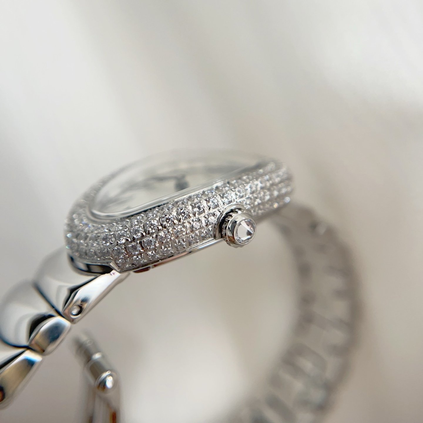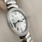 with imported Swiss quartz movement, 316L stainless steel case and bracelet, heat-treated steel blue hands, iconic Roman numeral dial, curved crystal lens, and interlocking crescent-shaped bracelet links. Case dimensions: Small size – 23mm in width and 31mm in length; Large size – 25mm in width and 32mm in length. Please note the price when placing an order; the listed price is for the Large size.
