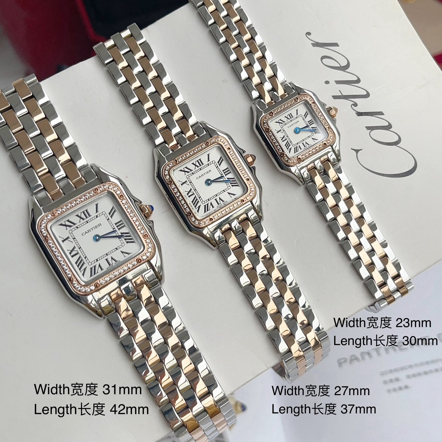Cartier Watch with Imported Swiss Quartz Movement. It features a 316L stainless steel case and bracelet