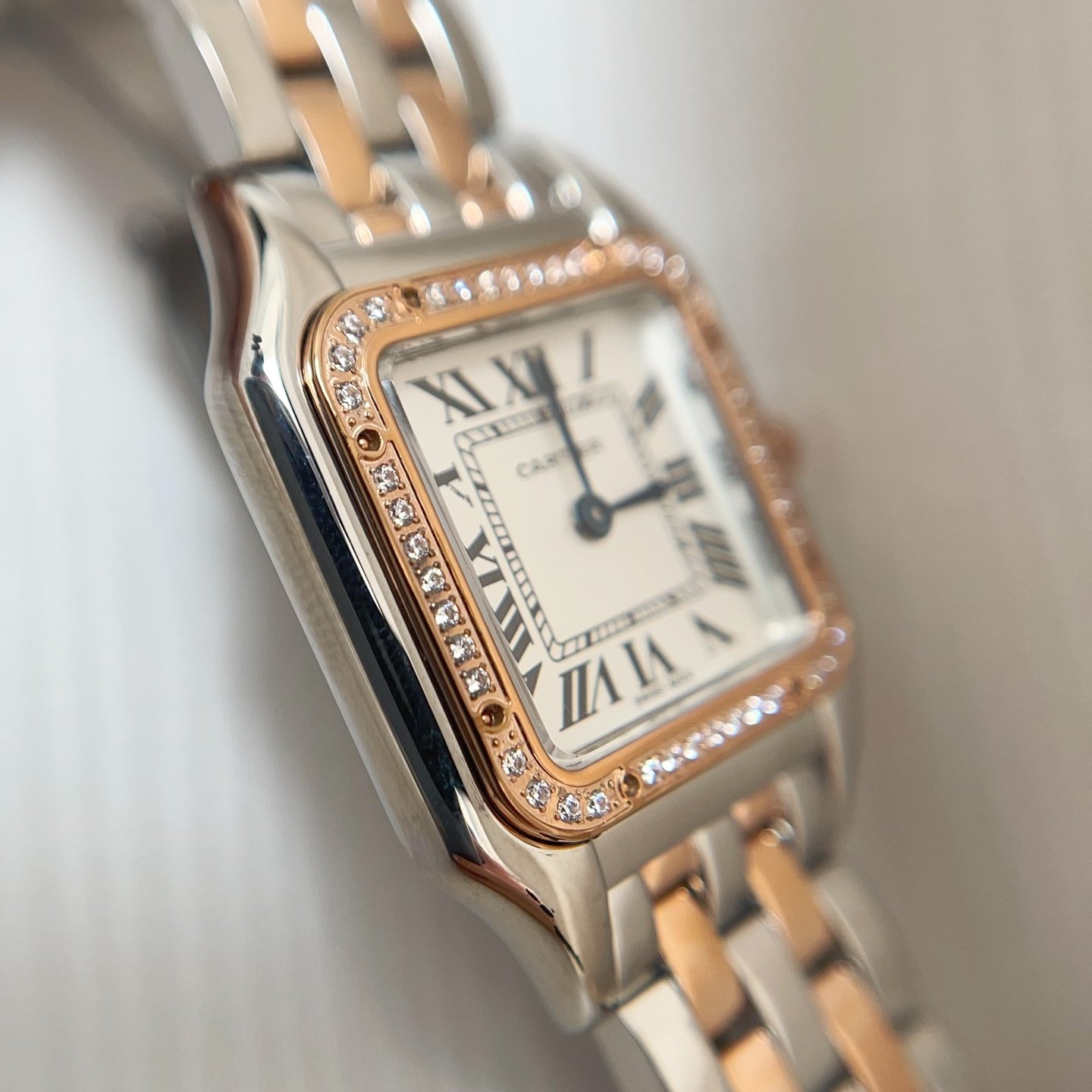 Cartier Watch with Imported Swiss Quartz Movement. It features a 316L stainless steel case and bracelet $430.00 – $530.00Price range: $430.00 through $530.00
