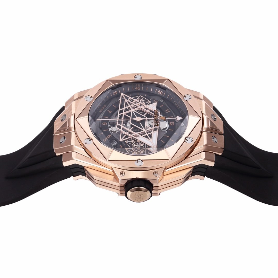 BBF Extreme Reproduction HUBLOT’s new Big Bang Sang Bleu II tattoo second-generation watch, Hengbao, is the only popular model on the market that comes standard with all titanium metal. After polishing, satin, slicing, carving, chamfering, and facet processing, it presents alternating hexagonal, diamond, and triangular shapes, creating a harmonious and charming visual effect. Customized Hengbao’s exclusive UNICO HUB 1240 automatic fly back timing movement, the industry’s only version with a 4.5-inch hollow calendar ring and window, a 3-character dial 60 minute timer (note: 7750 movements on the market can only time 30 minutes), an 8-character horizontal clutch, and a 9-character small second wheel. Synchronize the original half tooth crown tattoo logo to always face upwards. Batch edge sapphire crystal watch mirror, sandblasting process, seven color pattern pointer texture impeccable size 45mm thickness 16.6mm weight 153g, similarity of over 95%, all functions perfectly achieved ceiling level welcome players to taste (BBF products must be high-quality)