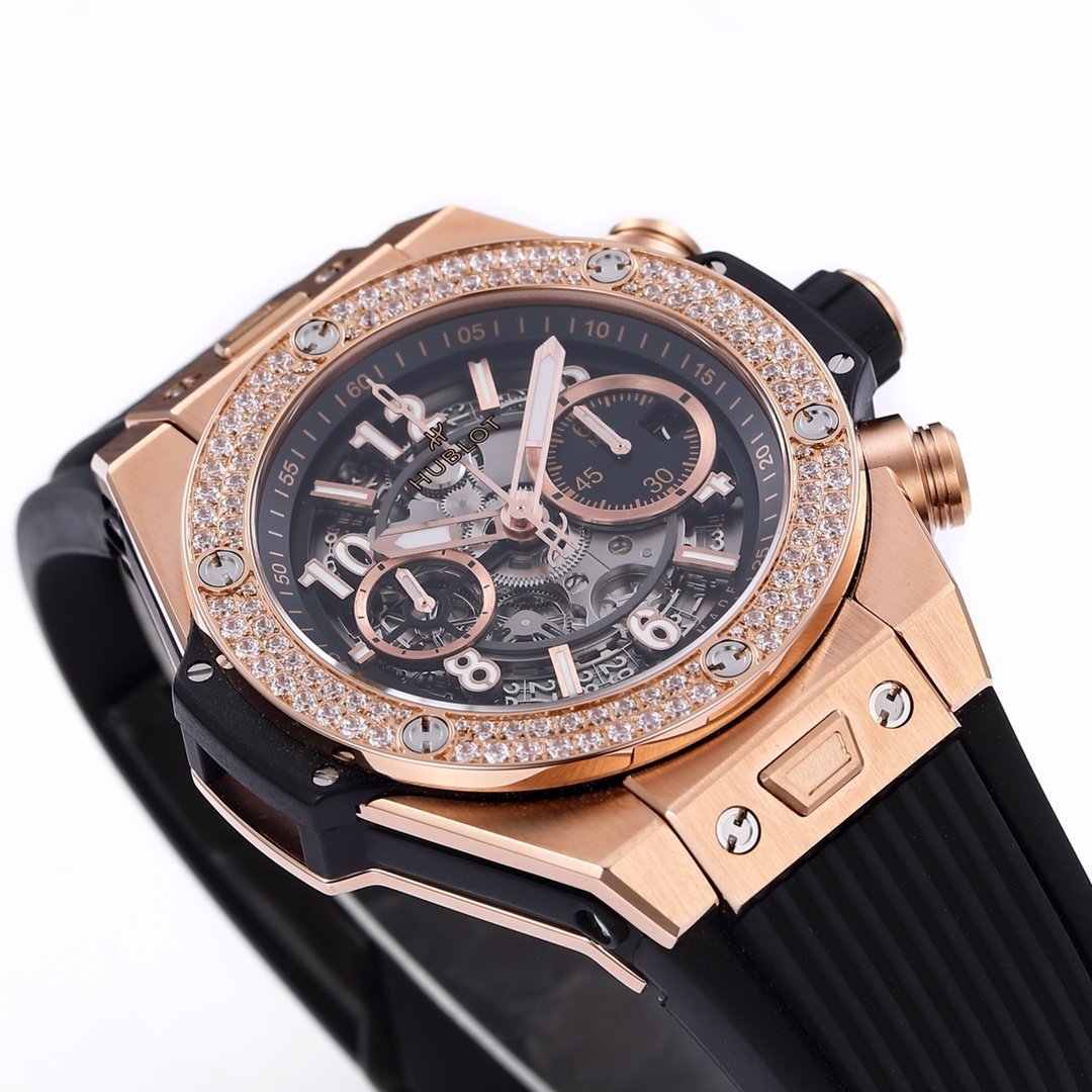 The highest version on the BBF market 🔥 HUBLOT Hublot BIG BANG Big Bang series top of the line artifact, brand new custom Hengbao exclusive UNICO HUB 1280 automatic winding timer timing core, 3-character hollow calendar ring, 3-character dial 60 minute timer (note: the 7750 movement on the market can only time 30 minutes), 8-sharacter horizontal clutch, 9-character small second wheel standard titanium structure, sapphire crystal mirror, rainbow pattern pointer texture, impeccable diameter 44mm, all functions 100% perfect to achieve a flash sale to other factories, all details and workmanship are also the only replica of the Big Bang ceiling level that is comparable to the genuine product (BBF must be a boutique)