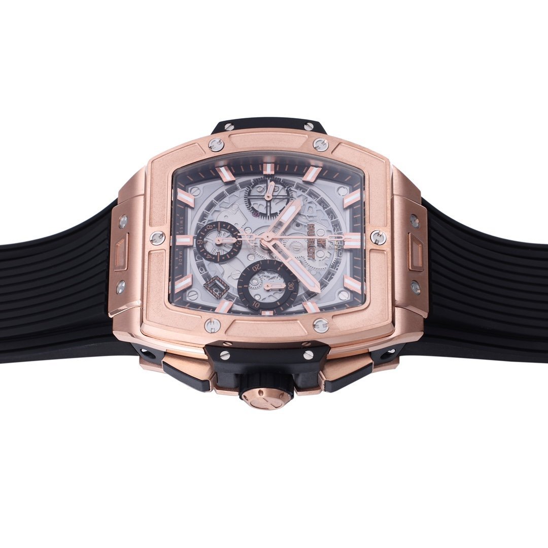 Hublot incorporates the spirit of the Big Bang series into another series of unique barrel shaped designs. This series of watch cases adopts a clever multi-layer structure, making it possible for the fusion of various materials, colors, and finishes. The BBF “Exclusive” HUB 4700 automatic winding timing movement is the only one on the market that uses the original version with a blank calendar ring. It is also the only one that uses the original material of 5-grade titanium metal to make the watch light and comfortable. The 42mm sapphire crystal mirror with rainbow patterned hands is a quick detachable rubber strap that can be interchanged with the original ceiling level (BBF products must be a boutique)