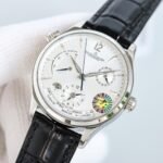 The iconic feature of the ZF Jaeger LeCoultre Master series watch is its multi time zone display function, which presents the world to the wrist, even taking into account the special nature of daylight saving time. The watch is made of stainless steel case with a diameter design of 39mm. It has put a lot of effort into the arrangement of the dial, with multiple complex functions but the dial is still well-organized. The 10 o’clock kinetic energy display window, the 2 o’clock calendar display plate, the second time zone display plate at 6 o’clock, and the world time display window at the bottom are perfectly matched, making it a classic work. Equipped with Jaeger LeCoultre’s CaL.939 automatic winding movement, the watch comes with an alligator patterned strap and Jaeger LeCoultre’s original exclusive buckle, providing comfortable and convenient wear
