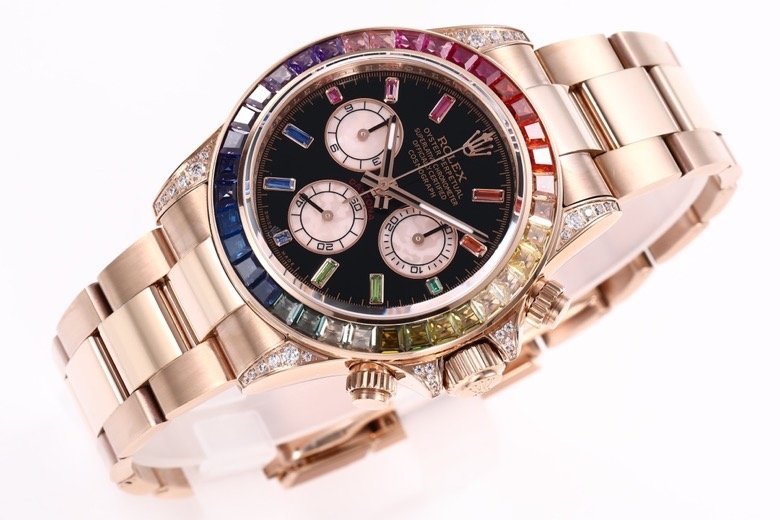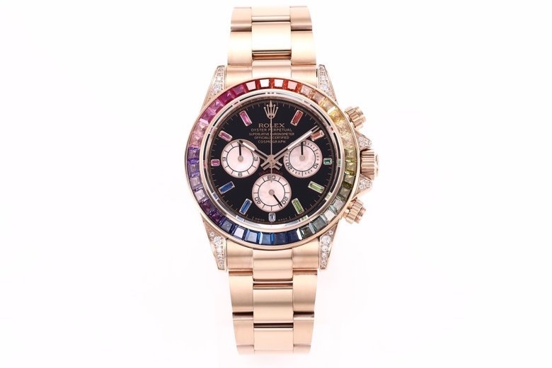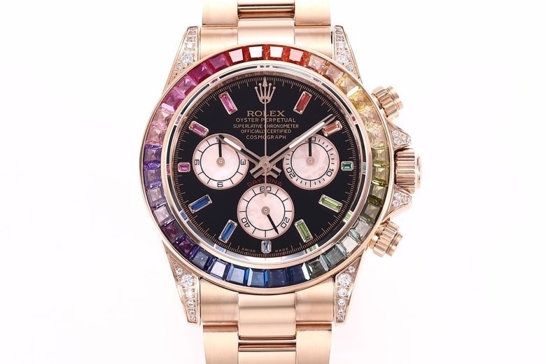 The all-new Daytona Rainbow Edition. Model: 116599RBOW-116598RBOW-116595RBOW. It’s hard to find a Rainbow Diton watch! The inlay is optimized with 36 gemstones that have the most harmonious transition according to the original factory color gradient. The height and angle are consistent, and the refraction effect is very beautiful. Each timing dial refracts light differently, resulting in bright and unique colors. Equipped with the original consistent Cal.4130 mechanical timing movement, sapphire crystal clear effect mirror, Rolex special ear, steel solid chain oyster style adjustable strap, polished and finely polished. Authentic purchasing packaging with corresponding styles and models, recommended for the highest quality.