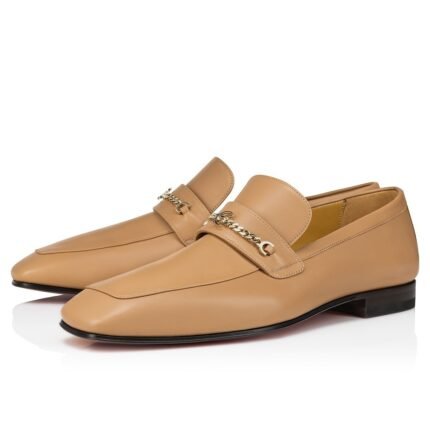 Christian Louboutin Men’s MJ Moc Loafers in Beige Calfskin