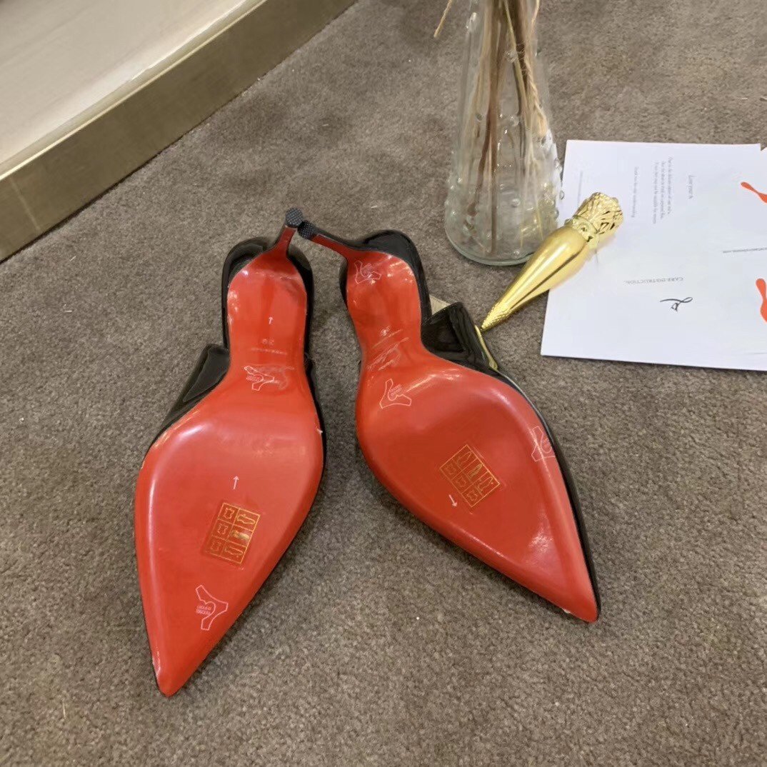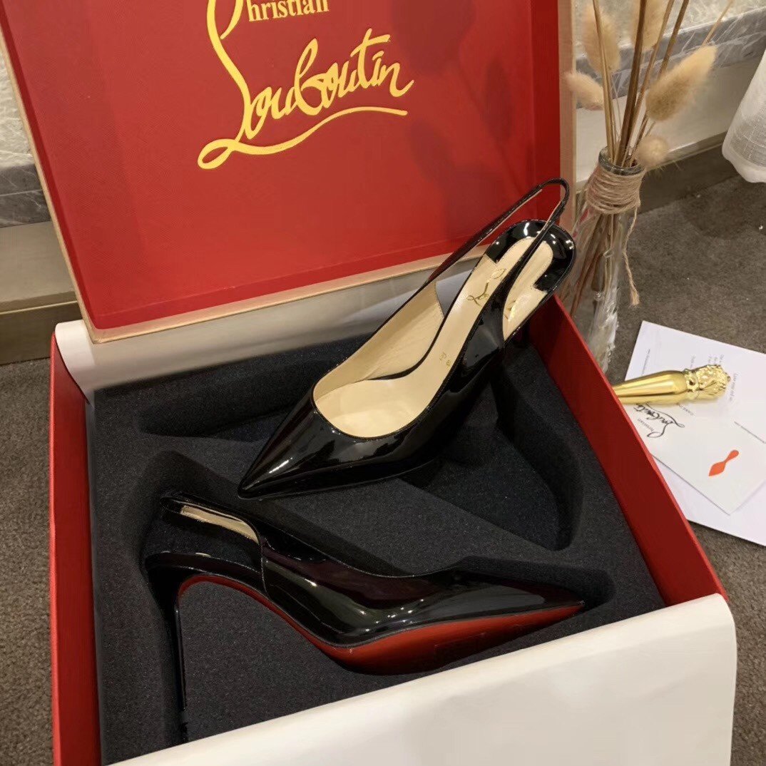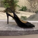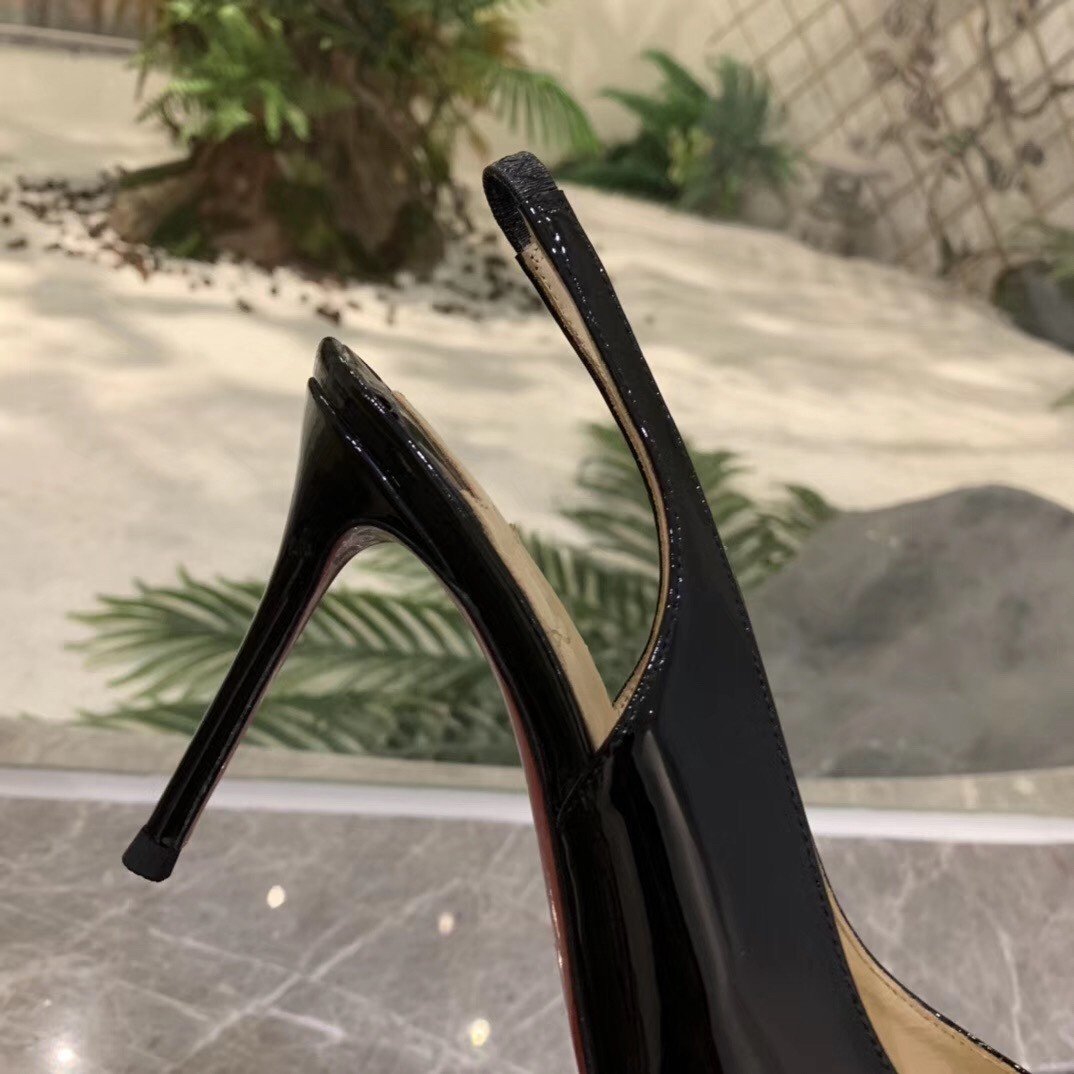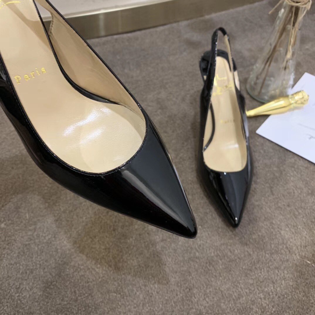 The Clare Sling pointy-toe pump is covered in glossy patent leather and adjusts with an elastic slingback strap on an 80mm stiletto heel. Its low-cut décolleté reveals with modernity, the expertise of the Louboutin House.