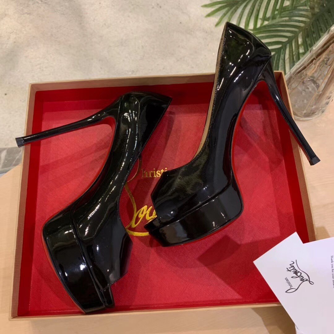 Home Shop Women shoes Christian Louboutin women's shoes Christian Louboutin Black Patent Fetish Peep 130mm Pumps