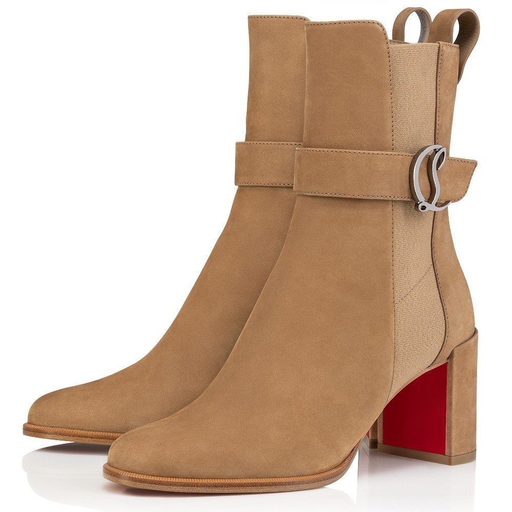 The CL Chelsea Booty boot showcases clean lines and timeless elegance. With its almond shape and elastic insert on the side, it is crafted in suede leather. Set on a 70 mm heel, it has a strap with a silver metal CL monogram. This urban style features a heel tab adorned with a Maison Christian Louboutin signature silver spike.