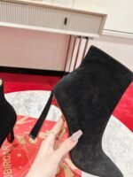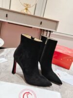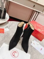 The Condora Stretch has a pointed toe like a bird’s beak. This is a sophisticated ankle boot in suede calf leather with a zip fastening. It has an 100 mm slanted heel, showcasing Maison Christian Louboutin’s innovative creativity. With its sleek lines playing with graphic elements, this model exudes timeless elegance.