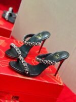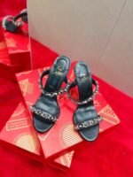 At first glance, the Just Chain sandals appear minimalist and clean – an aesthetic that typifies Christian Louboutin’s timeless approach to design. Take a closer look, however, and you’ll spot each high point; just note the scarlet-red sole, the sleek and slender heel and the parallel straps, adorned with a metal chain and silver-tone studs.