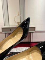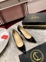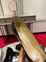 The Kate is a classic pointy pump with a wearable 85 mm stiletto heel. With its timeless appeal and sleek lines, this carryover version is an absolute essential in the wardrobe of any contemporary fashionista. Crafted from glossy patent leather and framed with a signature red sole, this iteration is a must for chic spring-summer styling.