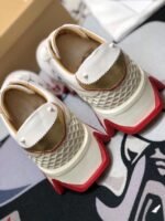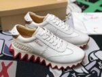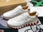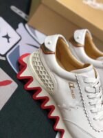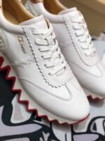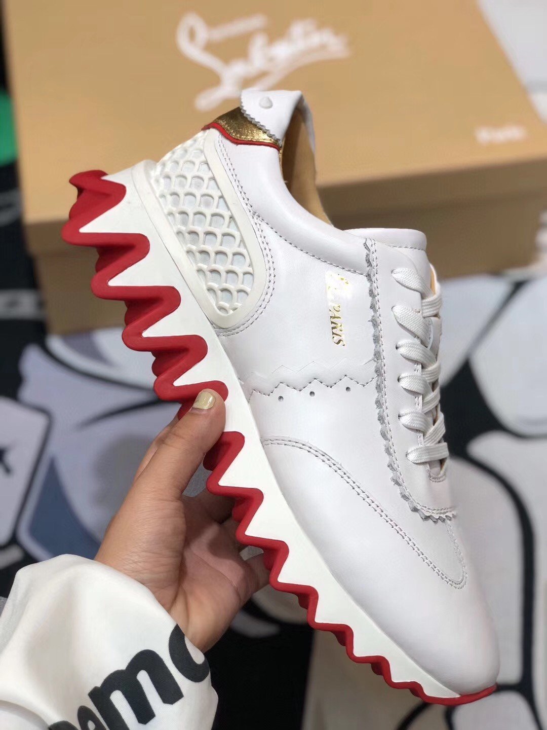 Cutting-edge design meets inimitable savoir-faire in the iconic Loubishark. This season features a carryover version in all-over Bianco white in a mix of materials with signature red on the heel tab. The multi-piece construction is enhanced with a zigzag detail, tone-on-tone openwork heel counter and CL Paris varsity logo. The master stroke comes in the form of a serrated sole mimicking shark’s teeth, highlighted with signature red.