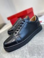 Taking inspiration from the tennis shoes of the 1980s, the Louis Junior Flat effortlessly blends retro chic with audacious modern elements. A master of reinvention, this sneaker takes on new textures and fabrics each season. This model features a classic look in all-over smooth Black calfskin leather, for those days when only timeless style will do. A signature Louboutin red sneaker sole adds a hint of daring.