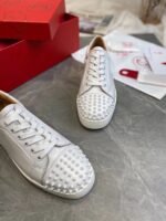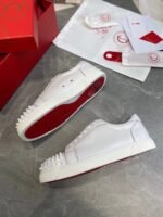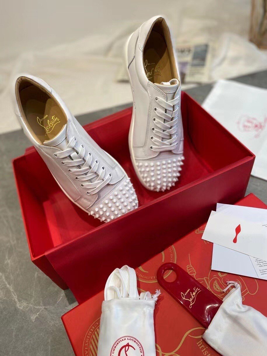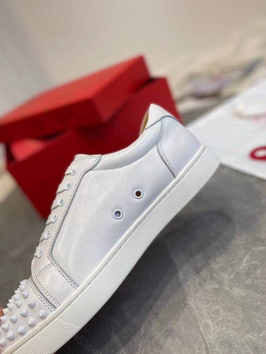 The Louis Junior Spikes is an iconic sneaker inspired by tennis shoes from the 1980s. This season the pure, clean lines of this classic low-top are crafted from all-over Bianco white calfskin leather, for fresh summer vibes. A white creeper sole and white laces perfectly finish this tonal look. As with all Louis Junior Spikes models, the toe box is embellished with signature spikes.