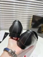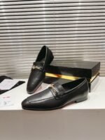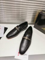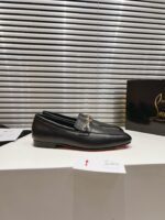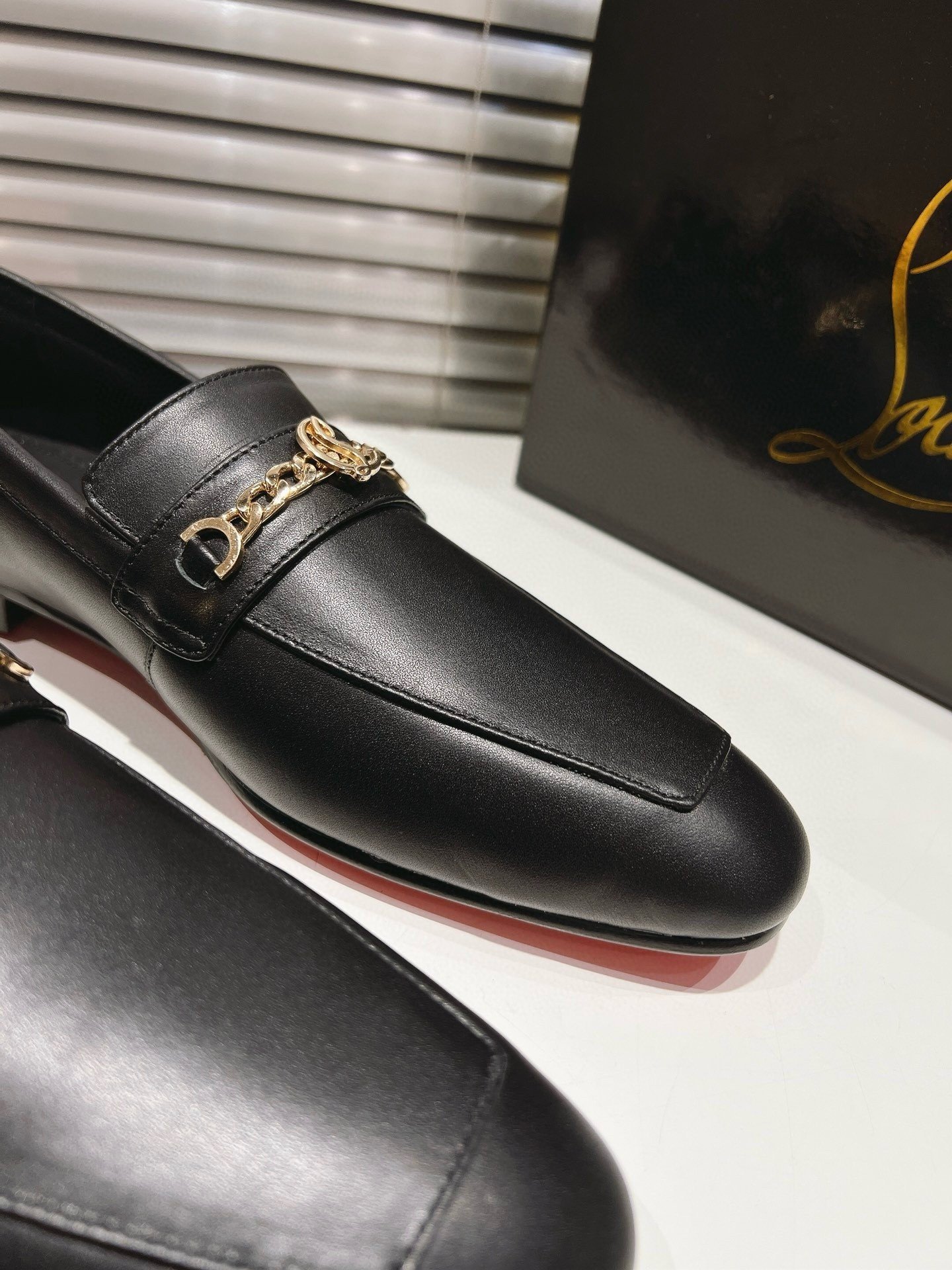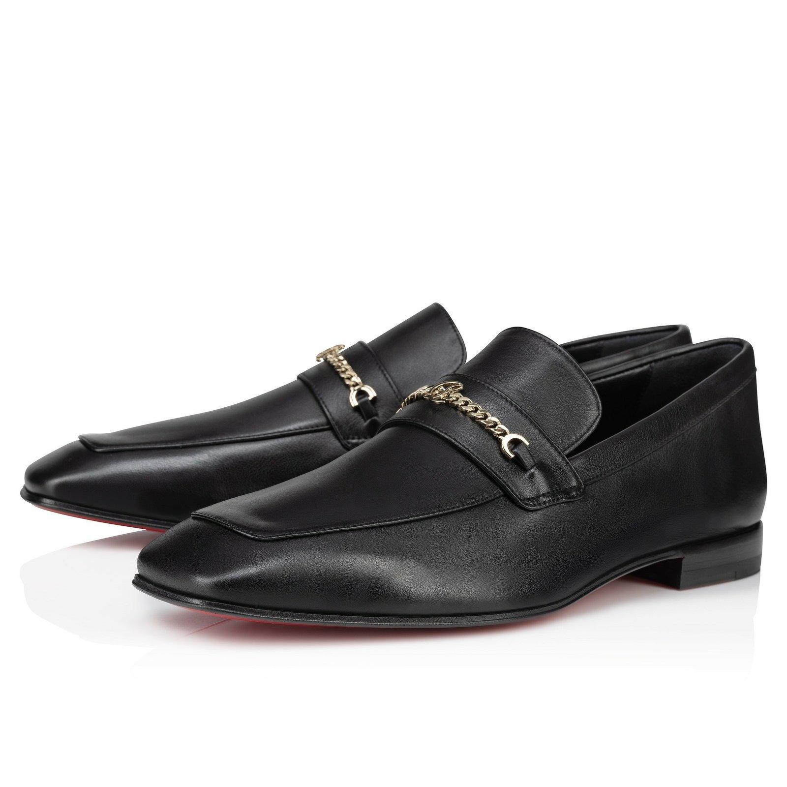 The men’s MJ Moc loafer is crafted in calf leather, and stands out for its sacchetto construction, a complex assembly technique performed by certain artisans, which ensures maximum flexibility for the shoe. This shoe from Christian Louboutin features a square toe. Its sophisticated lines are highlighted by topstitching and a gold chain on the top with the CL monogram. This pair has a slightly shiny finish in soft leather with a supple, second-skin feel.