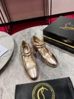 The elegant Miss Jane takes its shape from a Mary Jane. It is crafted entirely in iridescent leather and has a curved toe and 55 mm angled heel. This pump has an iconic Maison Christian Louboutin low-cut vamp. Enhanced with discreet finishing touches, it has two slim straps with a silver clasp, delicately adorning the foot.