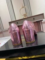The elegant Miss Jane takes its shape from a Mary Jane. It is crafted entirely in iridescent leather and has a curved toe and 55 mm angled heel. This pump has an iconic Maison Christian Louboutin low-cut vamp. Enhanced with discreet finishing touches, it has two slim straps with a silver clasp, delicately adorning the foot.