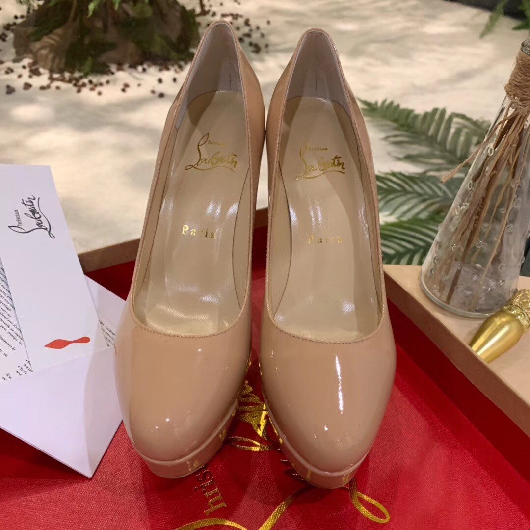 Dirditta, following the signature silhouette of the Bianca, is a classic low-cut patent leather pump perched on an expertly architected 130mm stiletto heel and an audacious platform sole for a dizzying profile.