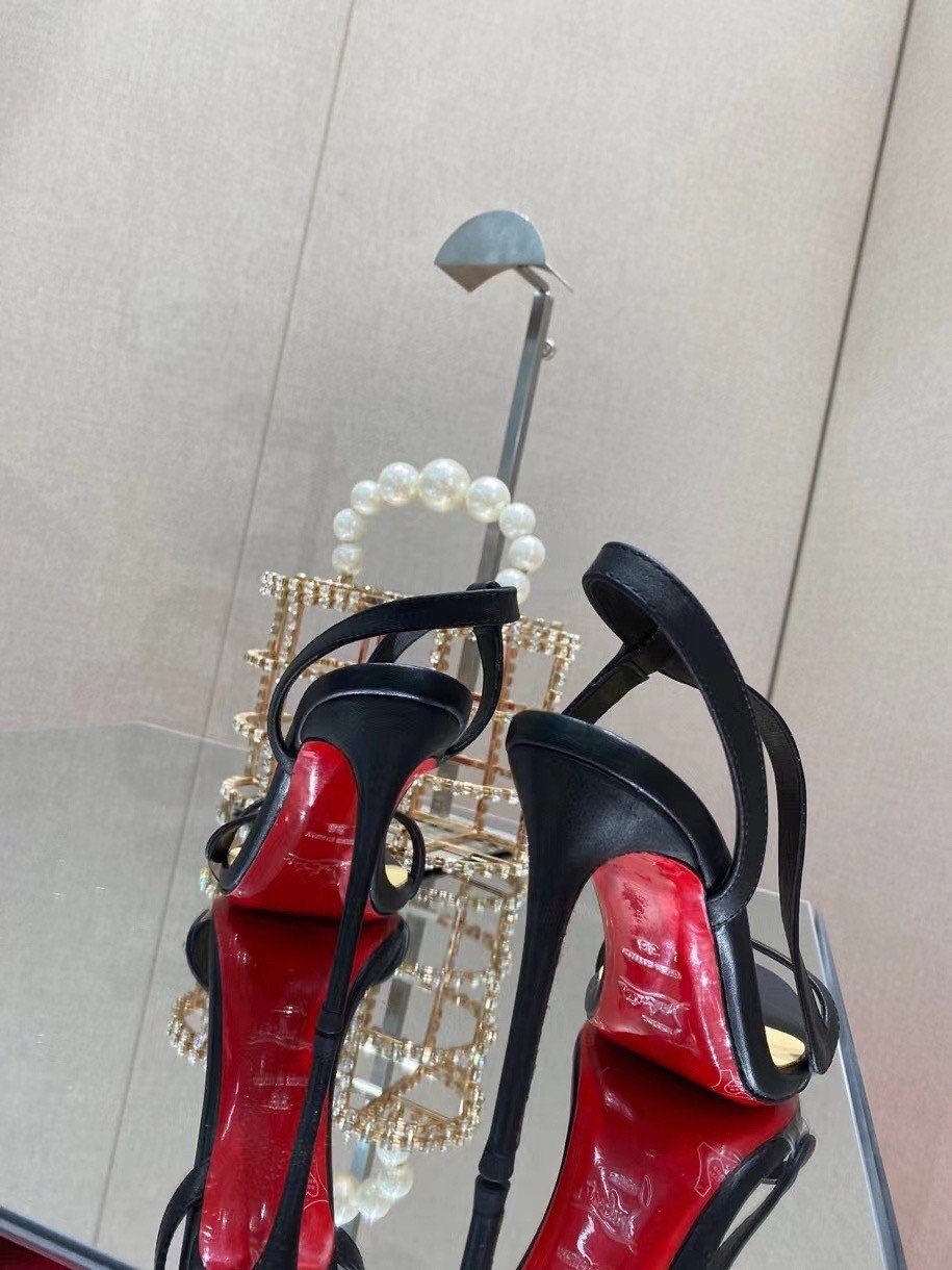 The sophisticated and refined Rosalie sandal is notable for its thin leather strap that undulates around the foot. This urban and modern model is set on a 100 mm heel and is made entirely of soft leather with iridescent reflections, demonstrating the know-how and creativity of Maison Christian Louboutin. A minimalist shoe delicately enhanced with discreet and detailed finishes.