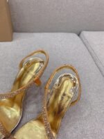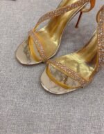 Christian Louboutin’s ‘Rosalie Strass’ sandals are designed with wavy foot-framing straps embellished with dozens of light-reflecting crystals. They’re made from metallic leather and suede leather for added sparkle and have signature ‘red bottom’ soles. The 100mm heels will add height to gowns and pants alike.