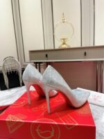 The sophisticated So Kate pump is an iconic shoe from Maison Christian Louboutin. Set on a lofty 120 mm heel, it features a low-cut vamp that elegantly reveals the foot. This season, it comes in a luminous iridescent silver leather, inspired by childhood. This modern yet timeless stiletto has a seductive and refined allure.