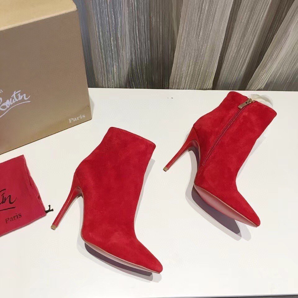 Combining simple elegance with clean lines, the So Kate Booty has become a true icon of Christian’s design repertoire. Curved lines gently encase the foot, secreted by a zip closure, and plunge down to a pronounced vamp ending in a winklepicker point. The sophisticated upper perches atop a wearable 100-mm stiletto heel that elongates the leg.