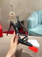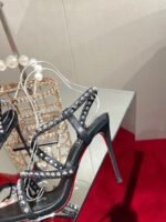 With its graphic lines and urban style, the Spikita Strap pump is charming and sophisticated. It is made from a black grained leather and set on a 100 mm heel. Its straps are dotted with silver Maison Christian Louboutin signature spikes.