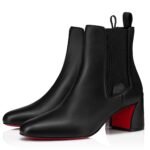 An ankle boot with a sophisticated silhouette, the Turelastic features a chunky 55 mm angled heel. Showcasing clean lines that epitomize Maison Christian Louboutin’s elegance, it is crafted in black ingrassato calf leather. It has a curved toe and features an elastic insert on the side, enhanced with an embossed CL varsity logo.