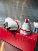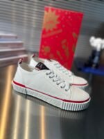 The timeless Pedro Junior sneaker is an enchanting summer style. This model has a two-color heel tab and is crafted in white cotton. The white textured rubber sole is enhanced with signature red edging and embossed with a CL monogram The Maison Christian Louboutin logo appears on a contrasting label on the tongue.