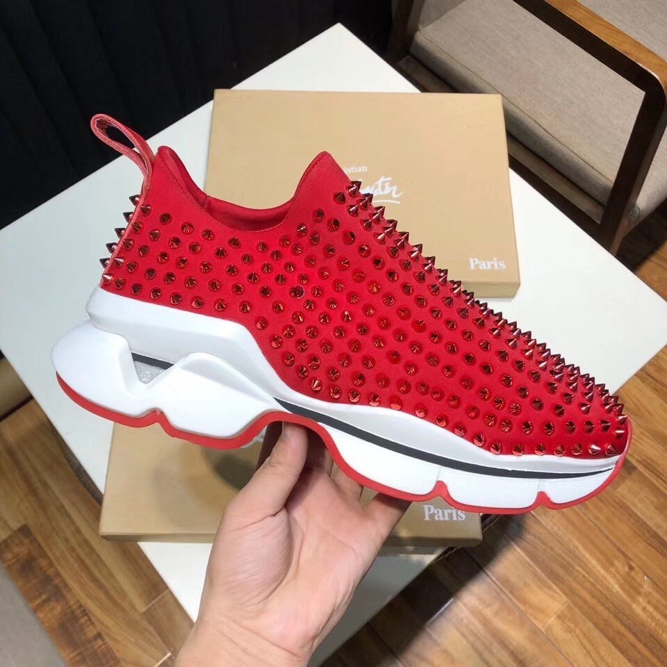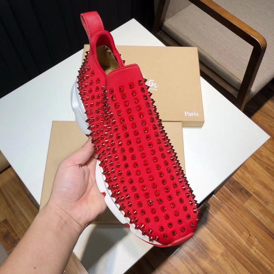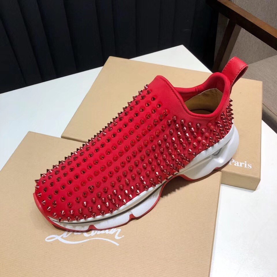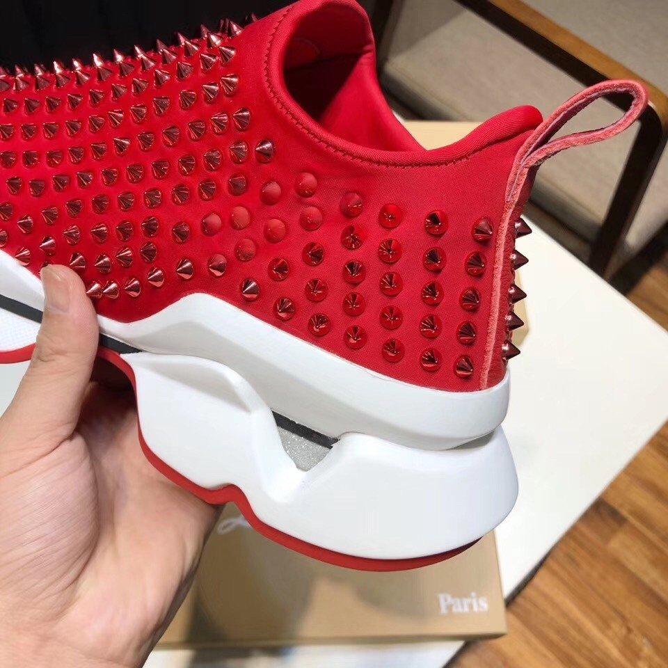 Inspired by the world of running, the Spike Sock Donna sneaker combines flexibility and modernity. Made of Loubi red Neoprene, it is adorned with 720 metal spikes. With its lace-free design, it slips on and off with ease.