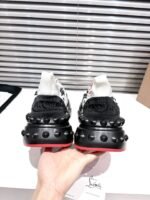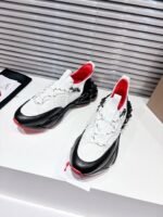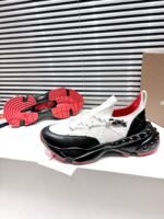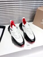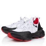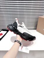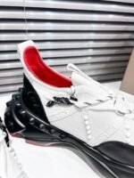 A lightweight running shoe, the Trailnrun women’s model is a low-top sneaker. Inspired by the lines of a hiking boot, it is set on a sole accented with Loubi red piping. This black and white contemporary model by Maison Christian Louboutin blends calf leather, fishnet and neoprene. It has a heel tab and spikes.