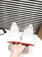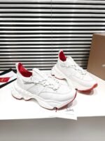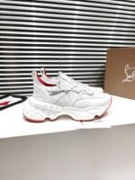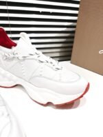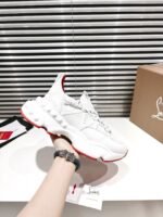 A lightweight running shoe, the Trailnrun women’s model is a low-top sneaker. Inspired by the lines of a hiking boot, it is set on a sole accented with Loubi red piping. This contemporary white model by Christian Louboutin blends calf leather, fishnet and neoprene. It has a heel tab and spikes.