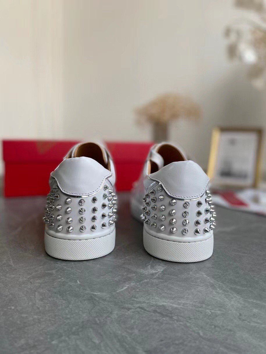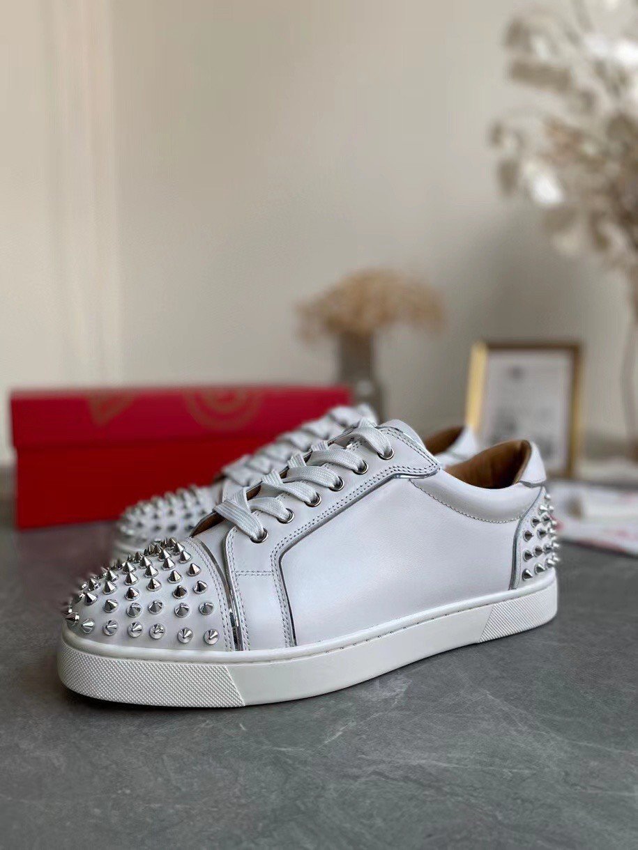 The Vieira 2 low top sneaker is the latest twist on the iconic Vieira low-top sneaker, brilliantly showcasing Maison Christian Louboutin’s skill at artfully mixing colors and fabrics to incredible effect. This season’s model combines pure soft calfskin leather with stunning Specchio silver a technical soft leather base with an intense silver sparkle, mimicking a leopard print. Signature glossy spikes adorn the toe and heel.