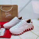 The fun style of the LoubiShark Donna low-top sneaker demonstrates the creativity of Maison Christian Louboutin. It sits on a two-tone shark-tooth style neoprene sole, combining inset panels with serrated trimmings and is adorned at the back with metallic signature spikes. It combines suede calfskin with red and gold metillic calfskin, expressing individuality and expertise.