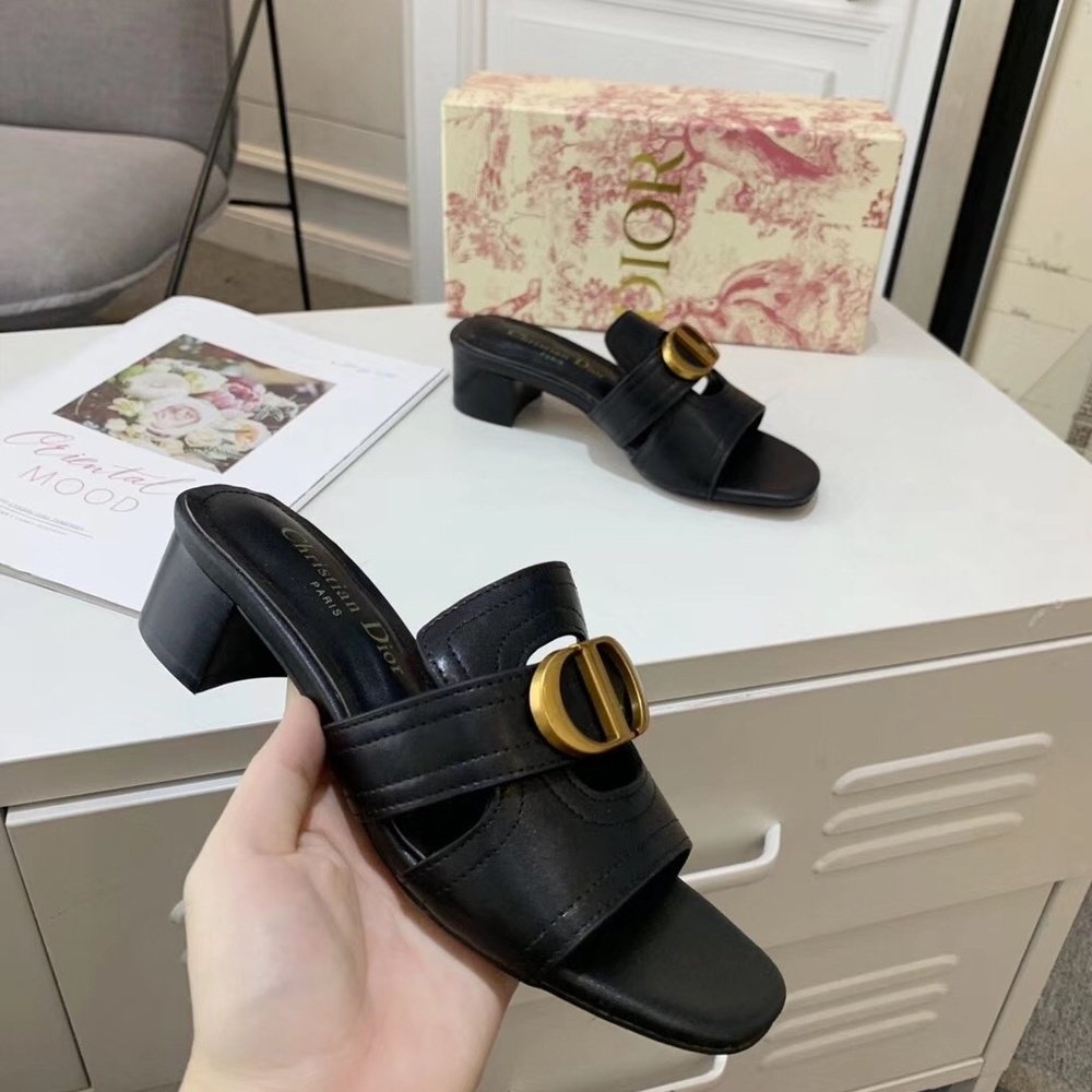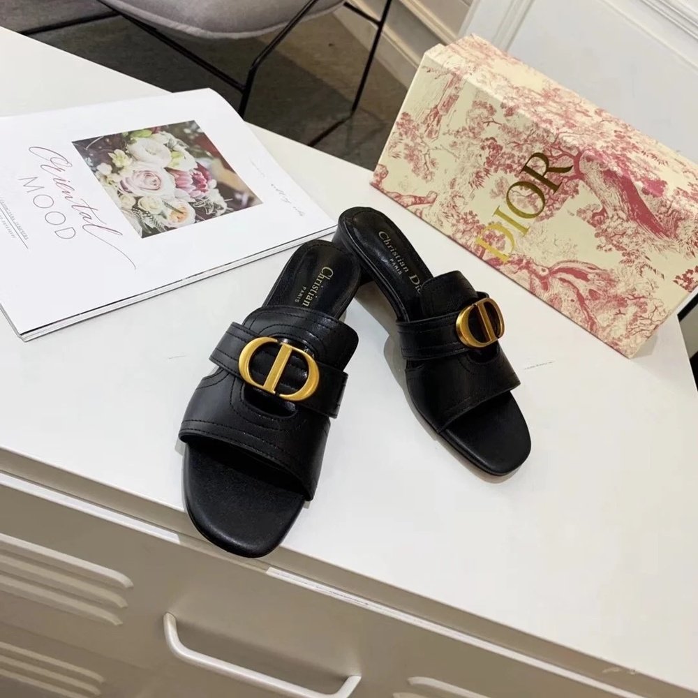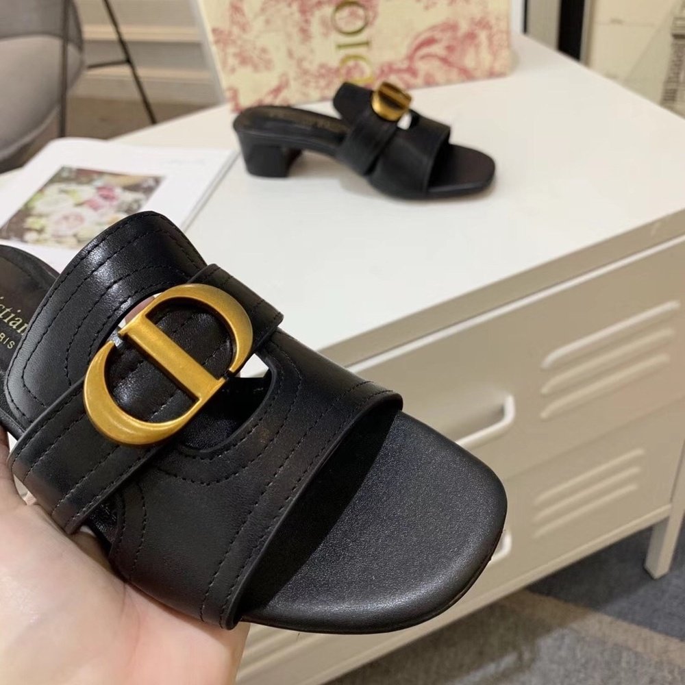 Home Shop Women shoes Dior women's shoes Dior 30 Montaigne Heeled Slides In Black Calfskin