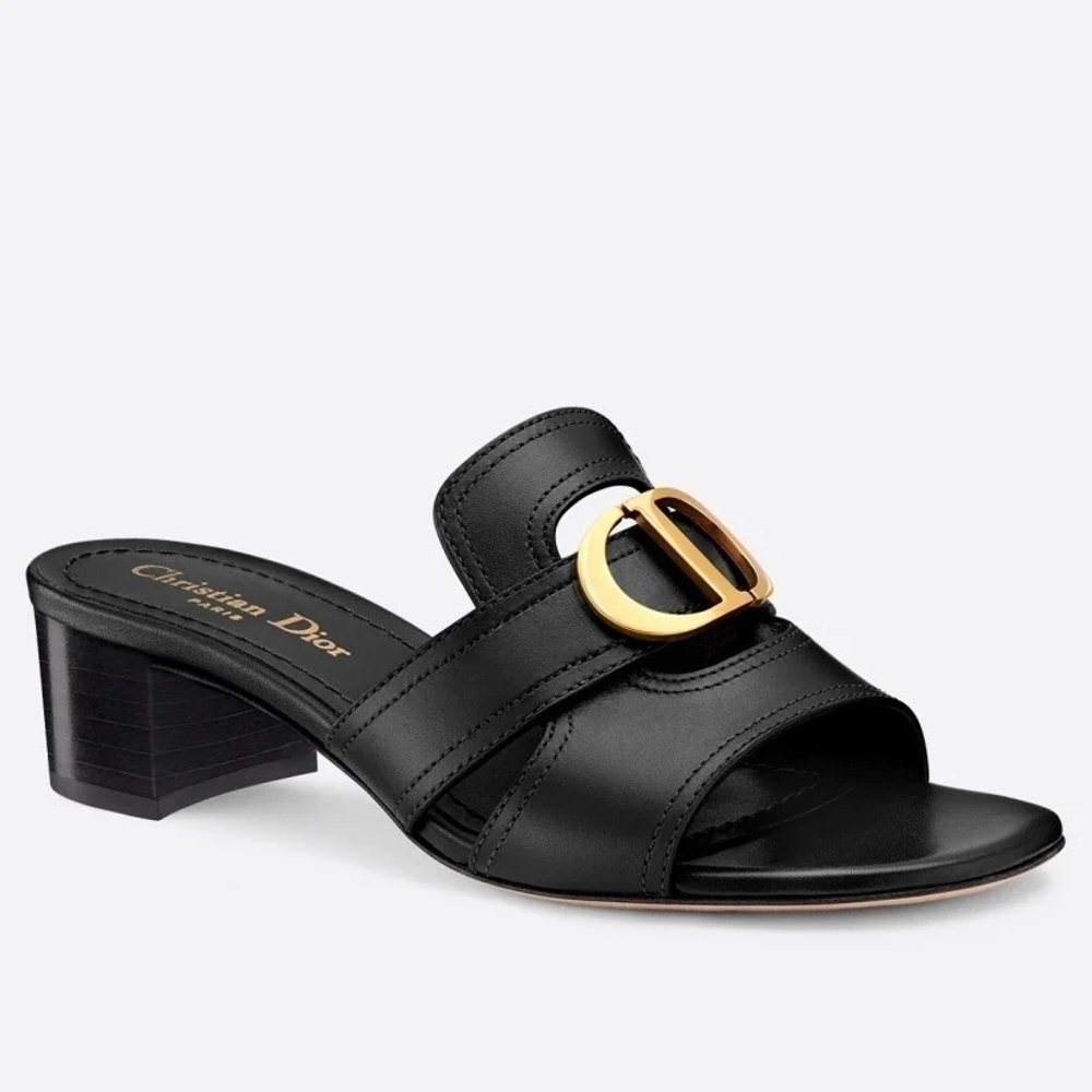 Dior 30 Montaigne Heeled Slides In Black Calfskin