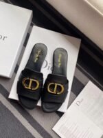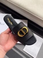 The 30 Montaigne slide is an essential Dior wardrobe piece. The gold-finish metal ‘CD’ signature highlights the silhouette and contrasts with the smooth calfskin. Its timeless and elegant design pairs easily with many styles.