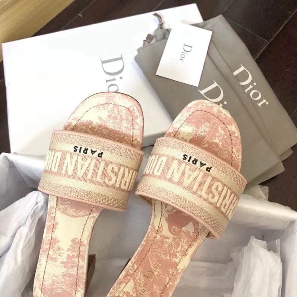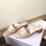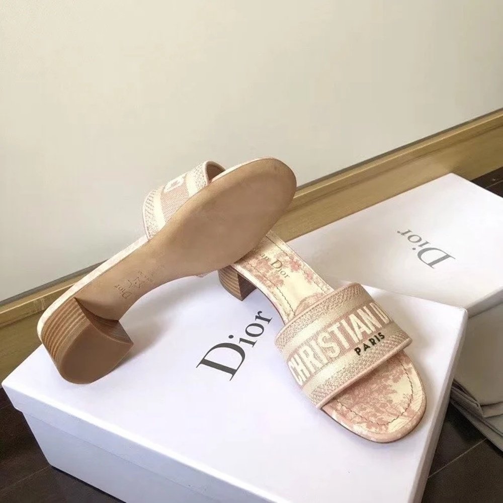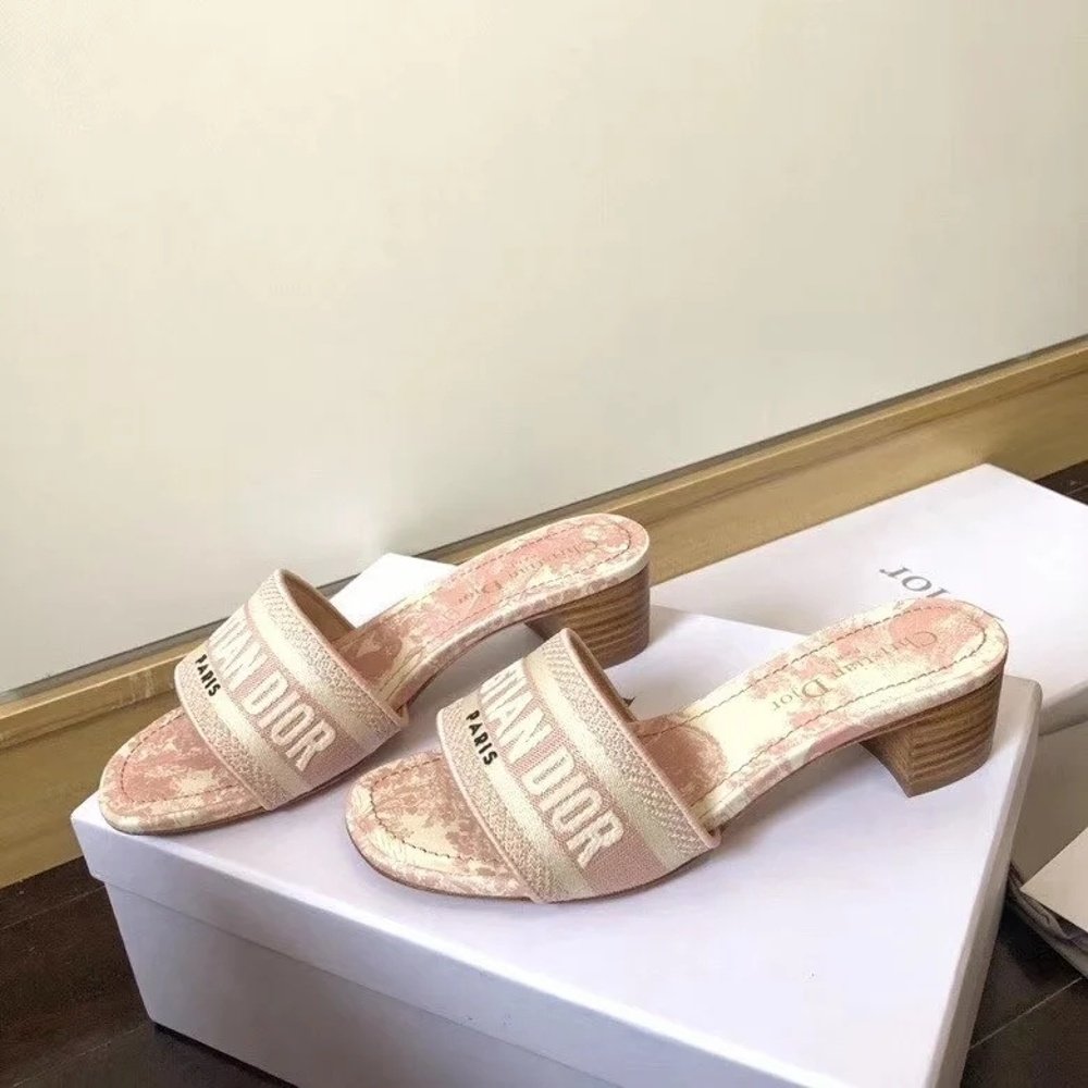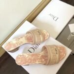 The Dway heeled slide boasts a timeless and emblematic silhouette and highlights the House’s iconic Toile de Jouy motif. The pink upper is embroidered with a ‘CHRISTIAN DIOR’ signature that is immediately recognizable. Featuring a 4 cm (1.5) block heel, the slide lends a modern touch to any look.